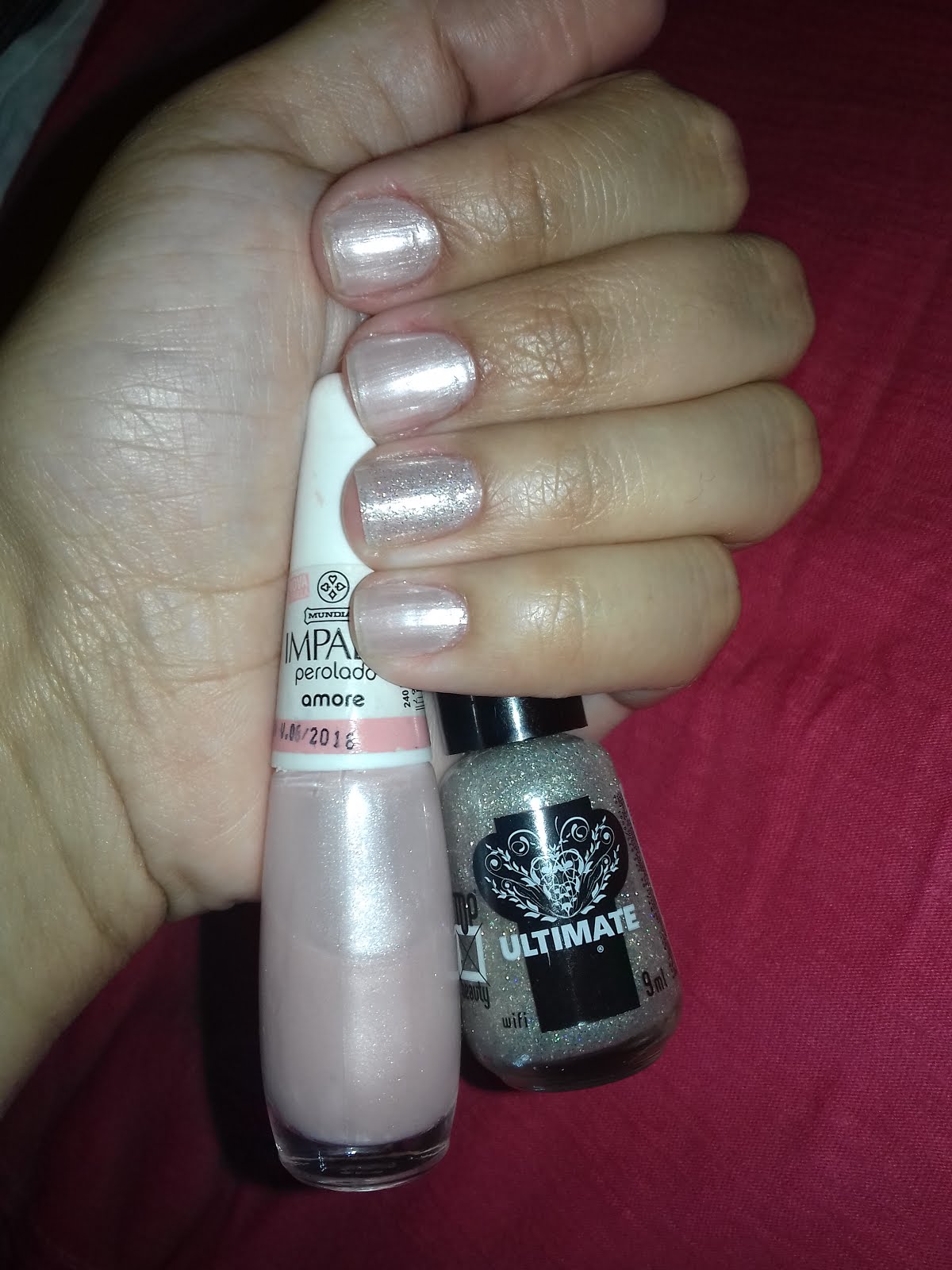 Olá meus amores, tudo bem? O Post de hoje é sobre as minhas unhas da semana💅, que estão super românticas, super meninha meiga.. hehehehe, vou aproveitar para fazer a resenha desses dois esmaltes que eu usei... o Impala perolado na cor Amore e o Top Beauty gliterizado! ❤❤❤